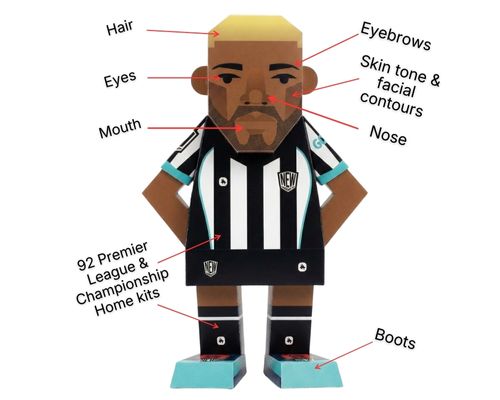 A massive 30cm figure with a GOAT shirt of your choice and highly personalisable details such as face, hair and name/number on the back, designed by you and manufactured print-on-demand in the UK.